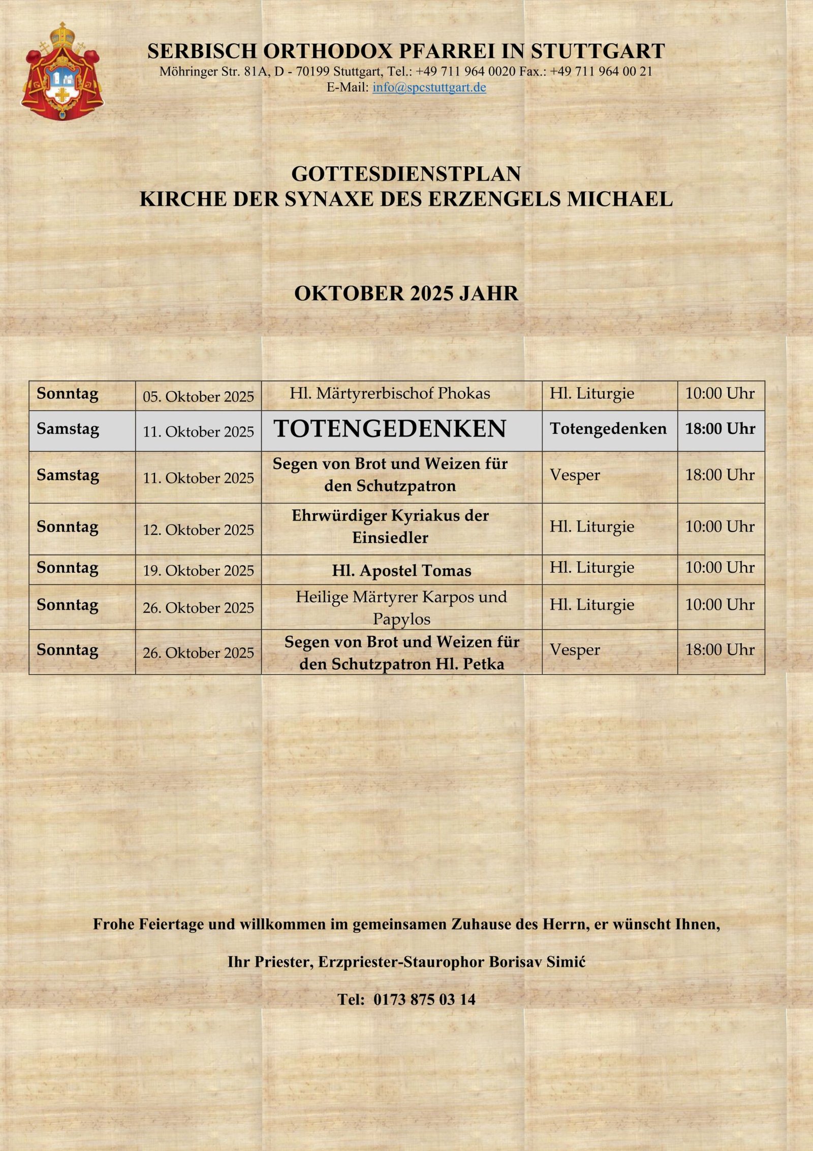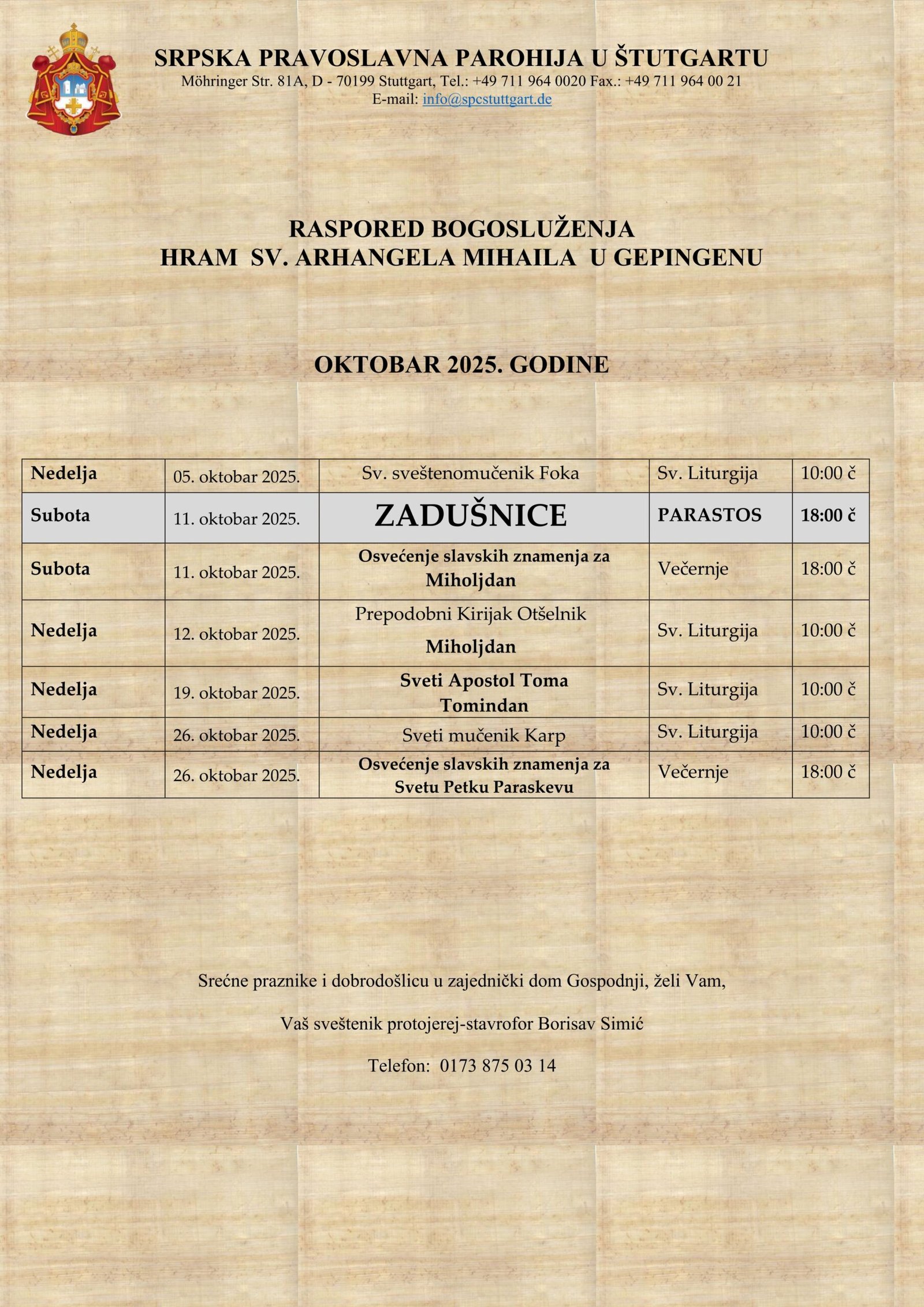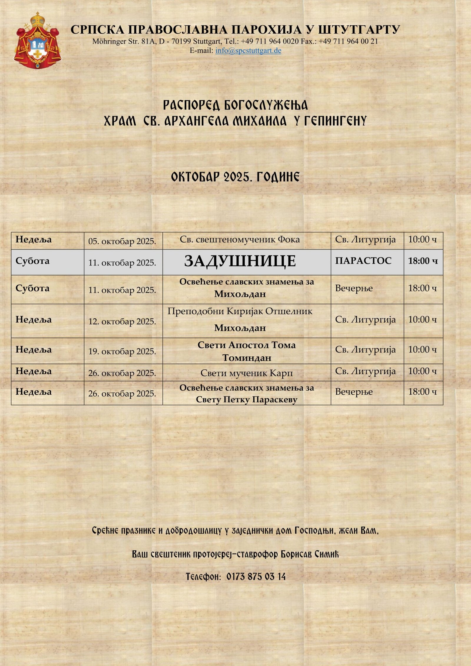 РАСПОРЕД БОГОСЛУЖЕЊАЛУДВИГСБУРГ