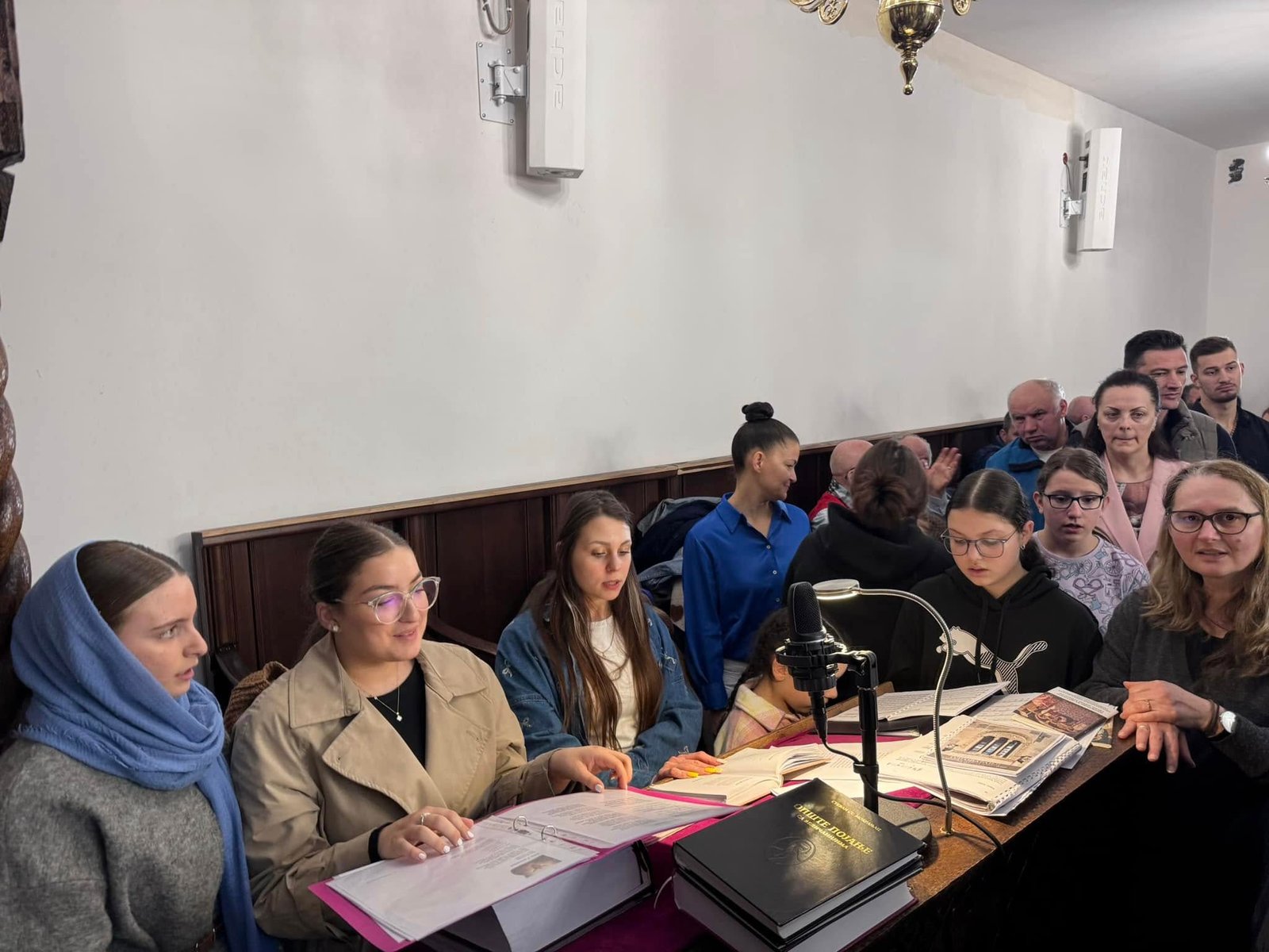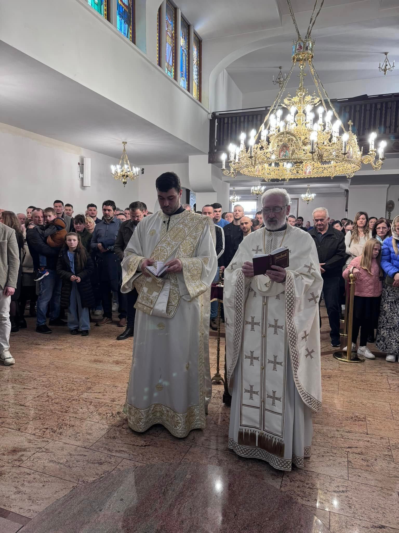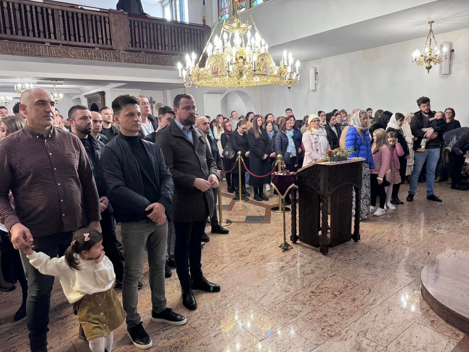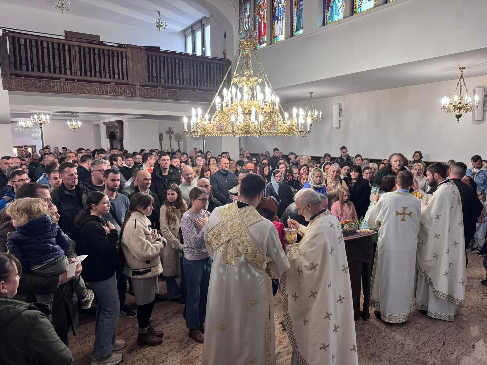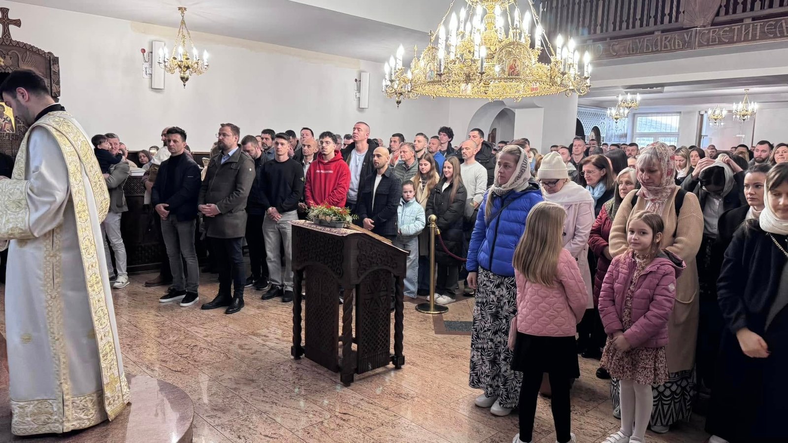 Храм је био испуњен верницима, а многи су, због великог броја присутних, стајали и испред храма.
