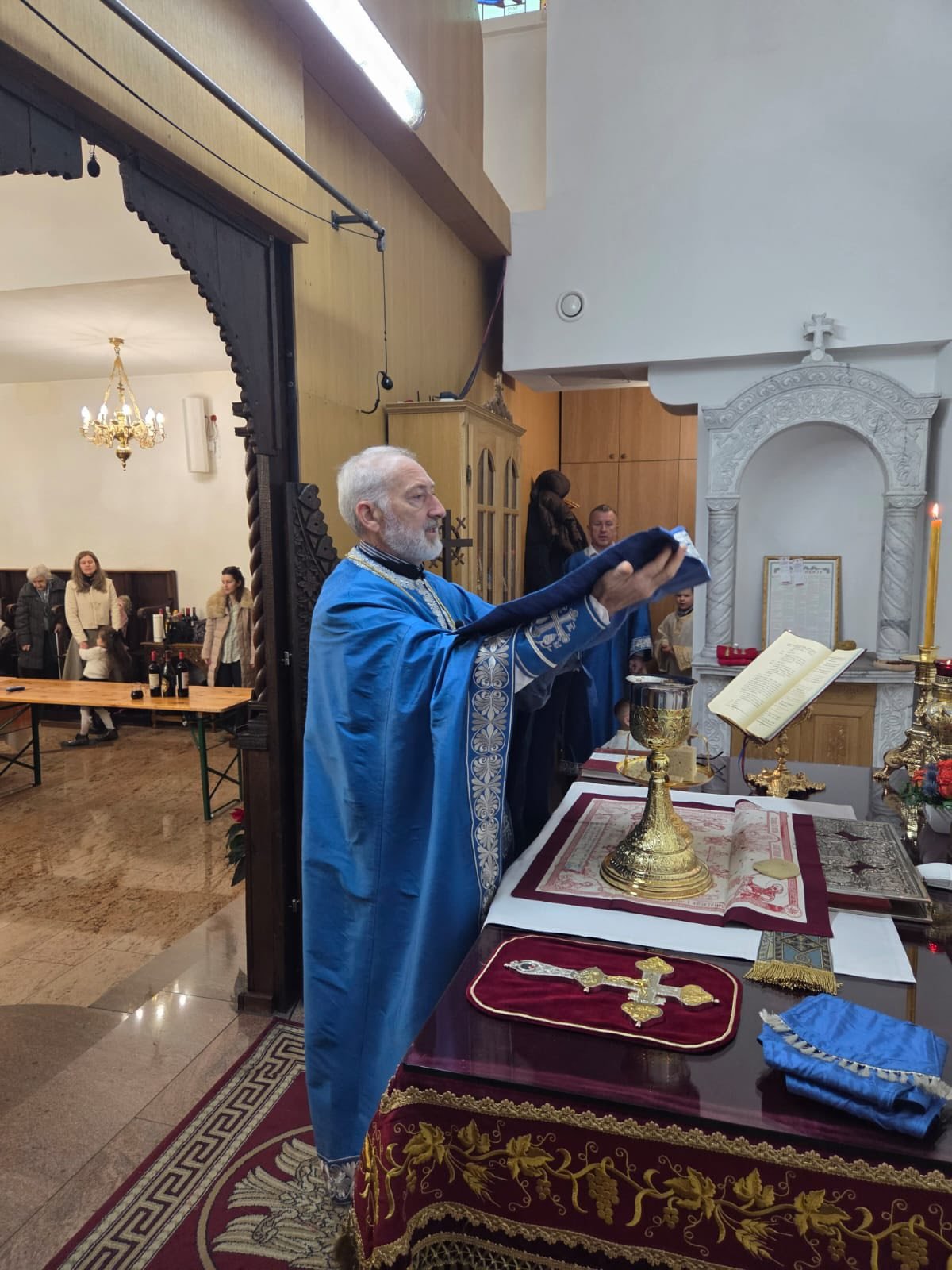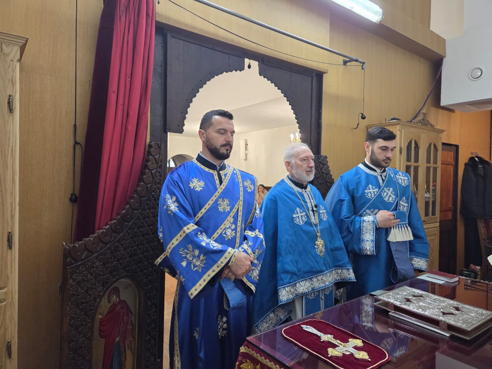 У петак, 19. децембра 2025. године, на празник Светог оца Николаја Мирликијског Чудотворца, у Храму Сабора Српских Светитеља у Штутгарту, Свету Литургију служио је протојереј-ставрофор Борисав Симић, уз саслужење ђакона Бојана Јарића и Марка Коловића.