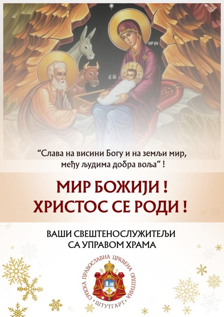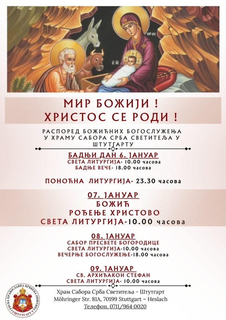 У Храму Сабора Срба светитеља у Штутгарту, на празник Христовог Рођења, 7. јануара 2025. године, служена је друга света литургија. Началствовао је протојереј Миленко Бакмаз, уз саслужење протојереја Драгослава Ћорковића и ђакона Бојана Јарића.