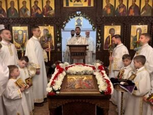 У недељу, 26. октобра 2025. године, у Храму Сабора Српских Светитеља у Штутгарту, свечано је служено навечерје празника Преподобне мати наше Свете Петке. Вечерњу службу са чином петохљебнице служио је протојереј-ставрофор Борисав Симић.