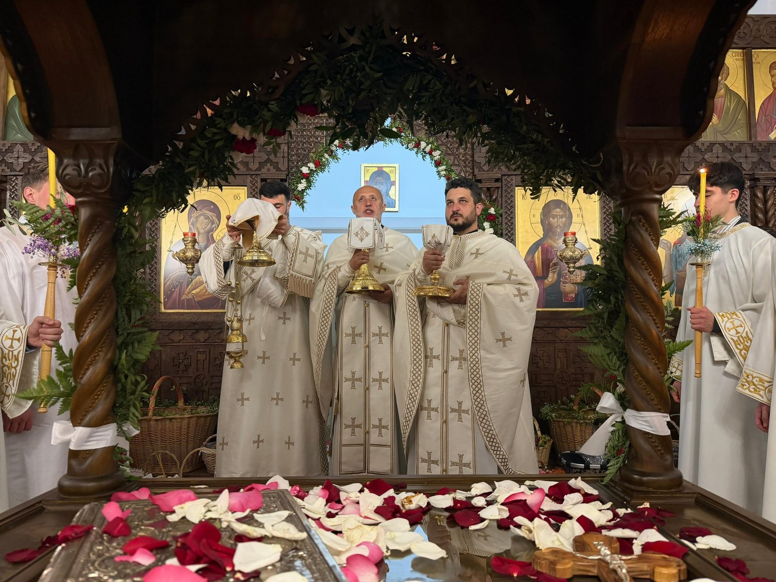 На Светим Литургијама причестио се велики број верника, који су испунили храм и заједнички прославили Празник над празницима