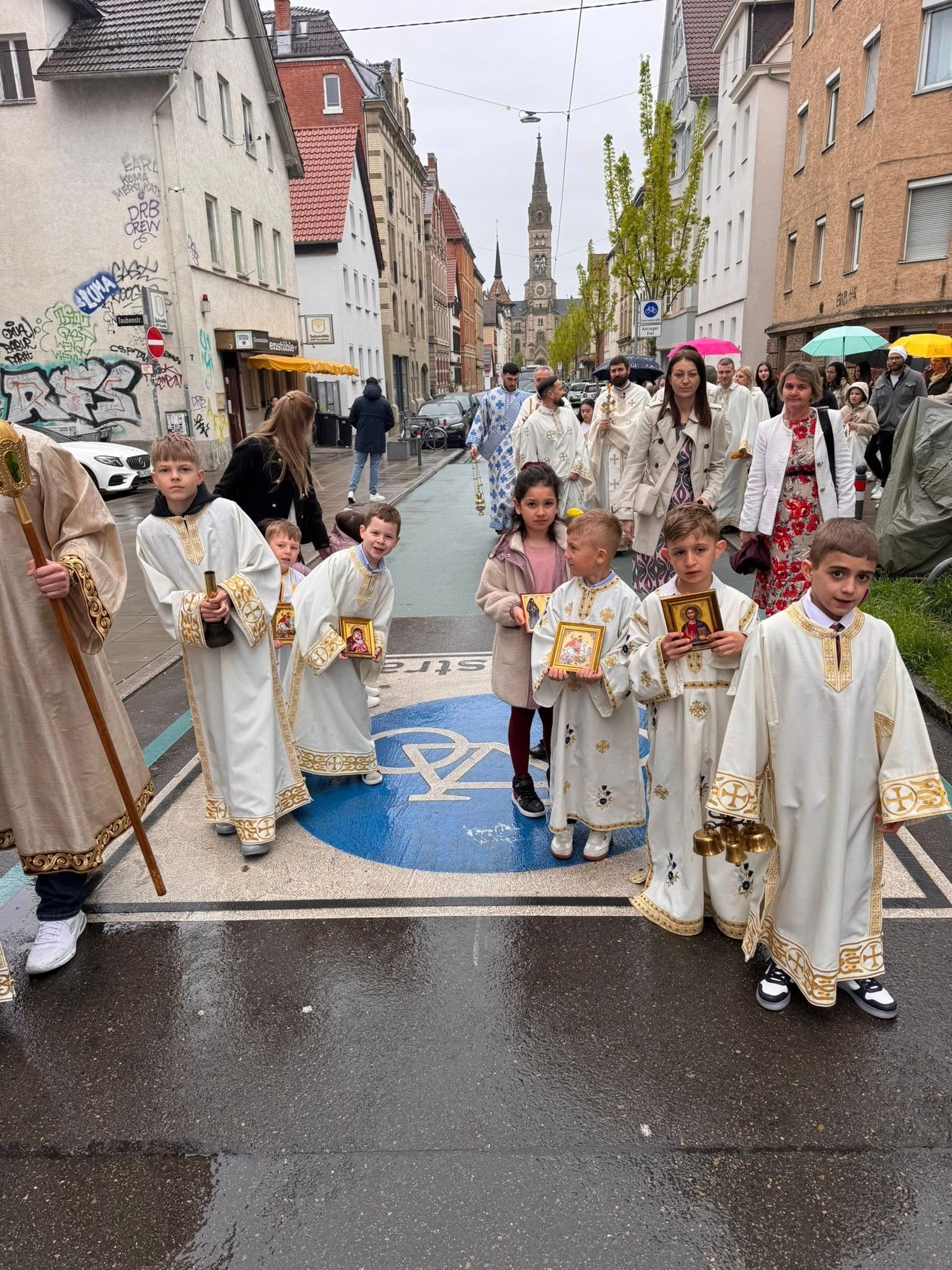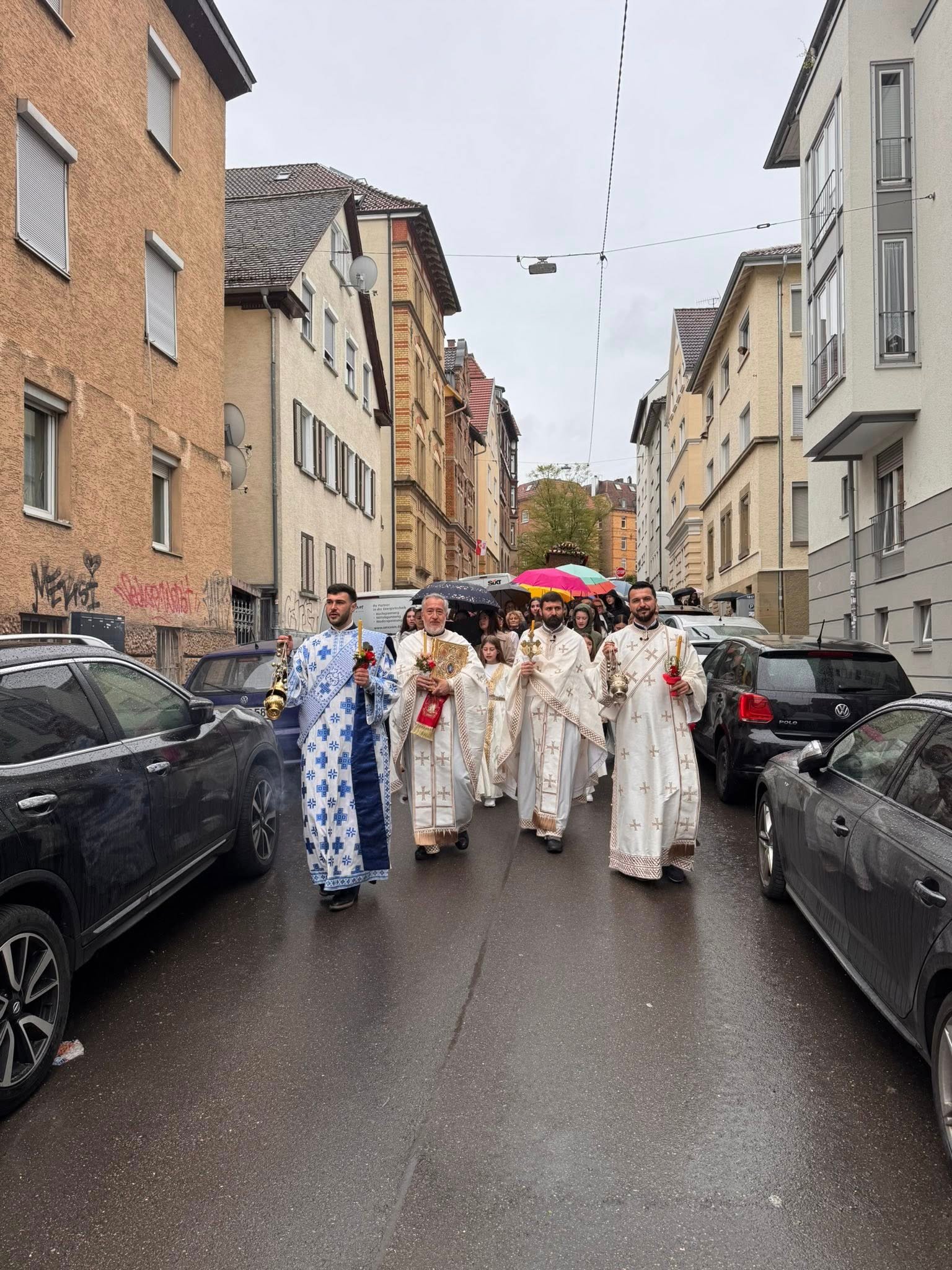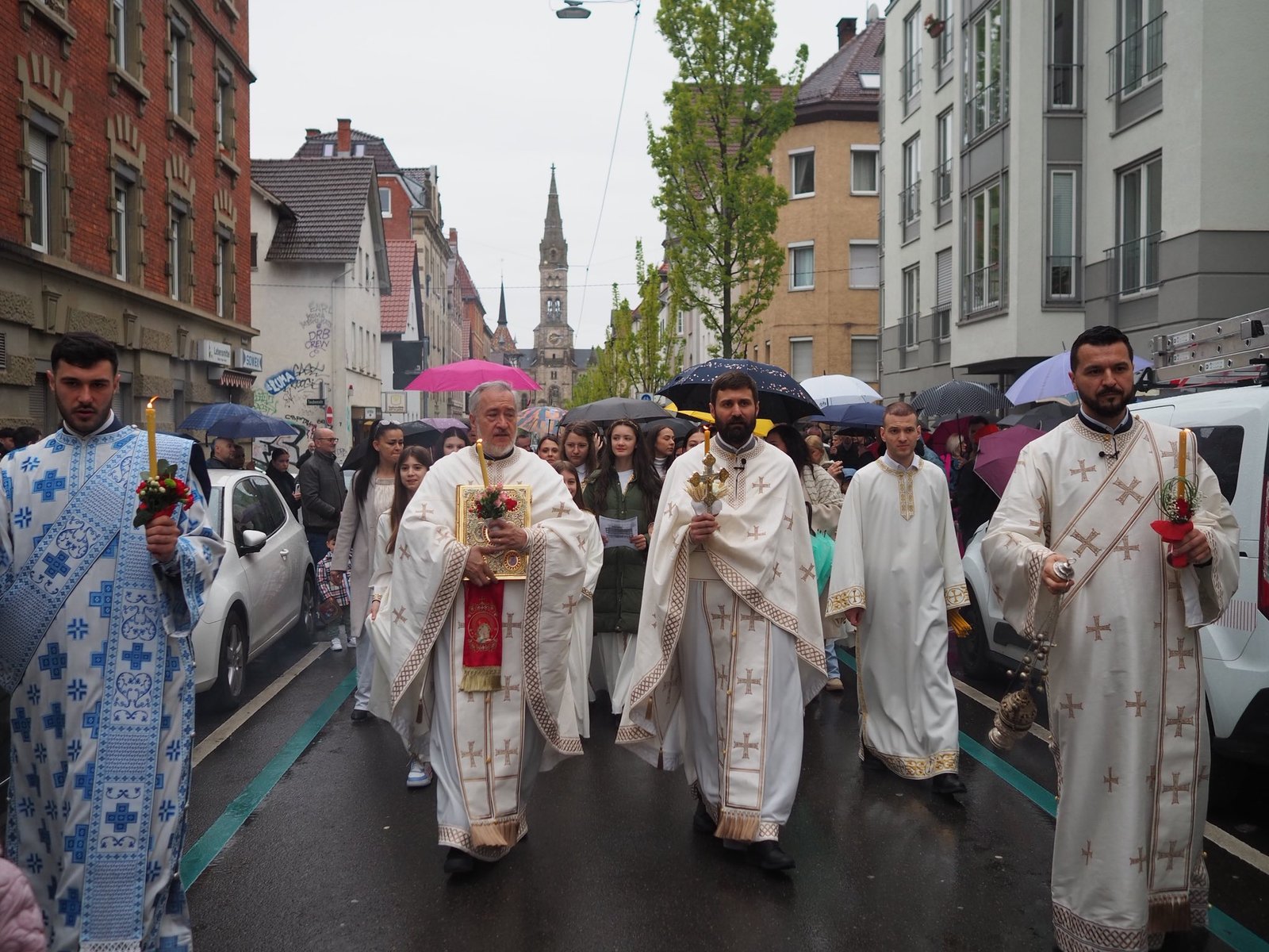 На Празник Васкрсења Христовог, у храму Сабора српских светитеља у Штутгарту, служена је поноћна Света Литургија којом је началствовао протојереј Станко Ракић, уз саслужење протојереја Александра Бјелића (Епархија пакрачко-славонска) и ђакона Марка Коловића.