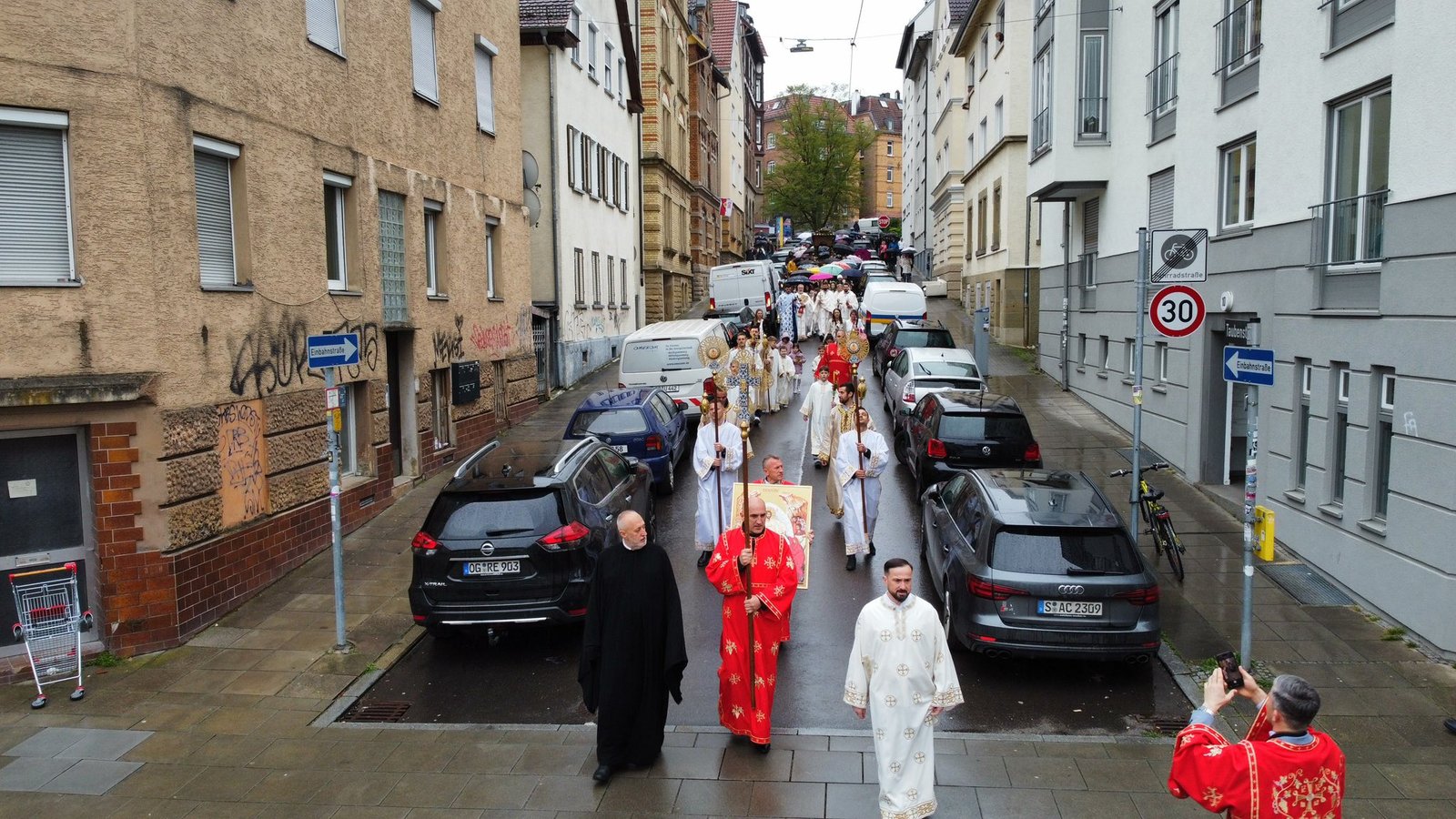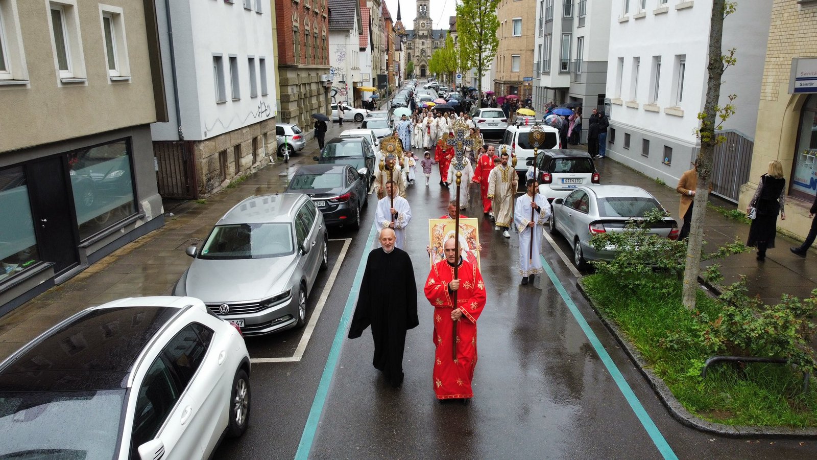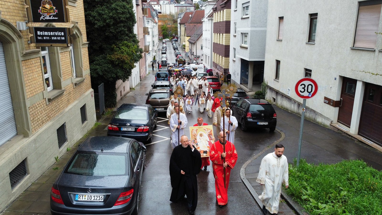 На Празник Васкрсења Христовог, у храму Сабора српских светитеља у Штутгарту, служена је поноћна Света Литургија којом је началствовао протојереј Станко Ракић, уз саслужење протојереја Александра Бјелића (Епархија пакрачко-славонска) и ђакона Марка Коловића.