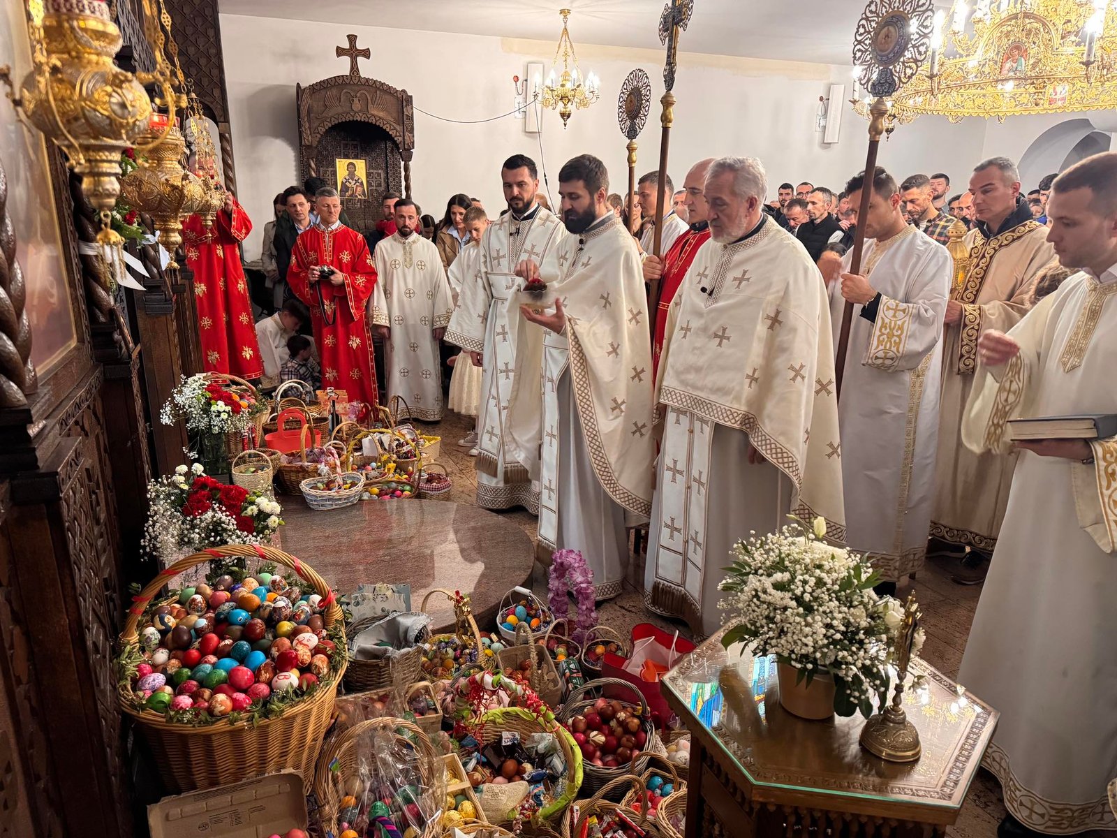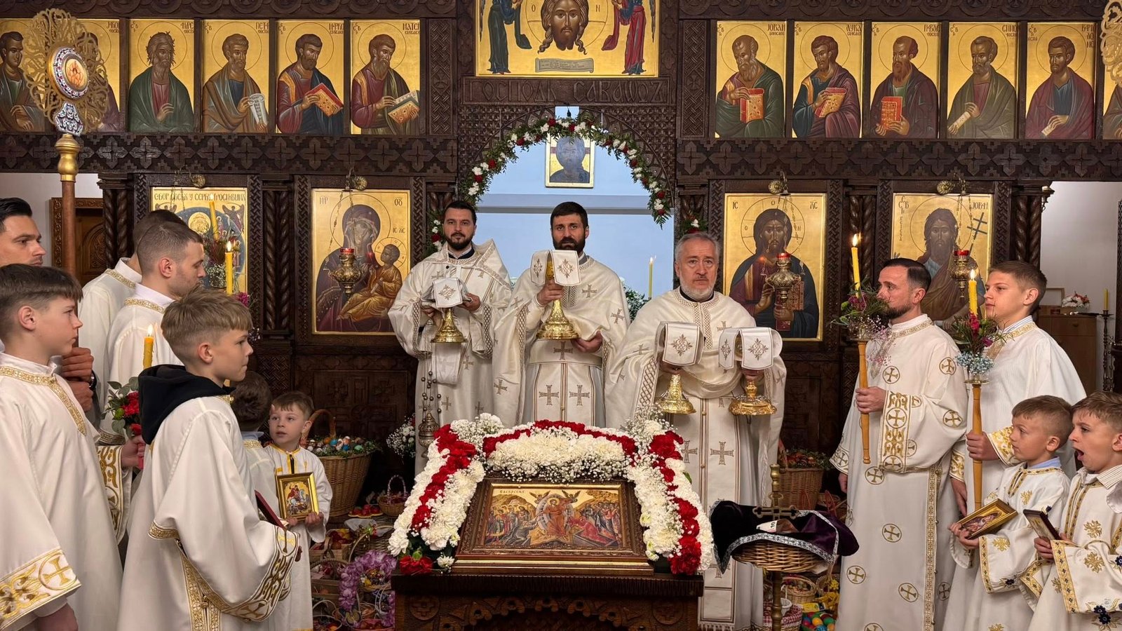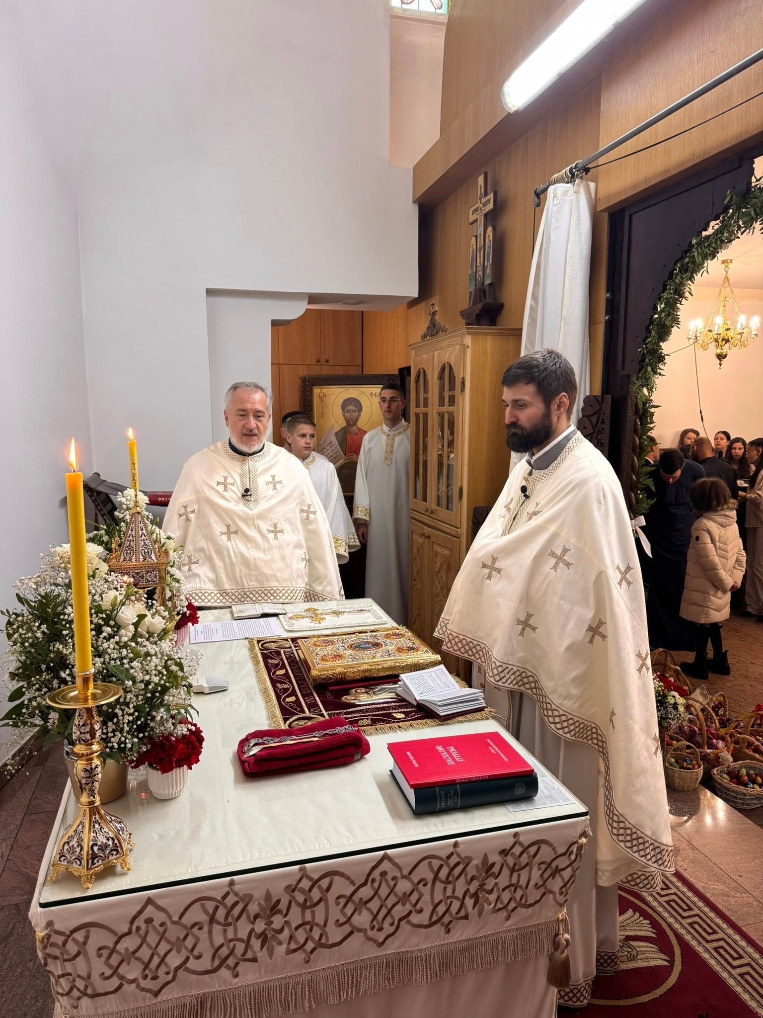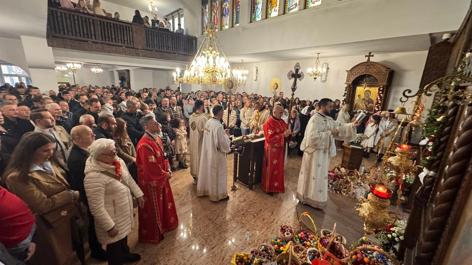 Свечана централна Света Литургија, служена на Васкрс, у недељу 12. априла 2026. године, започела је васкршњом литијом која је три пута обишла храм околним улицама. У наставку Свете Литургије началствовао је протојереј Миленко Бакмаз, уз саслужење протојереја Драгослава Ћорковића и ђакона Бојана Јарића.