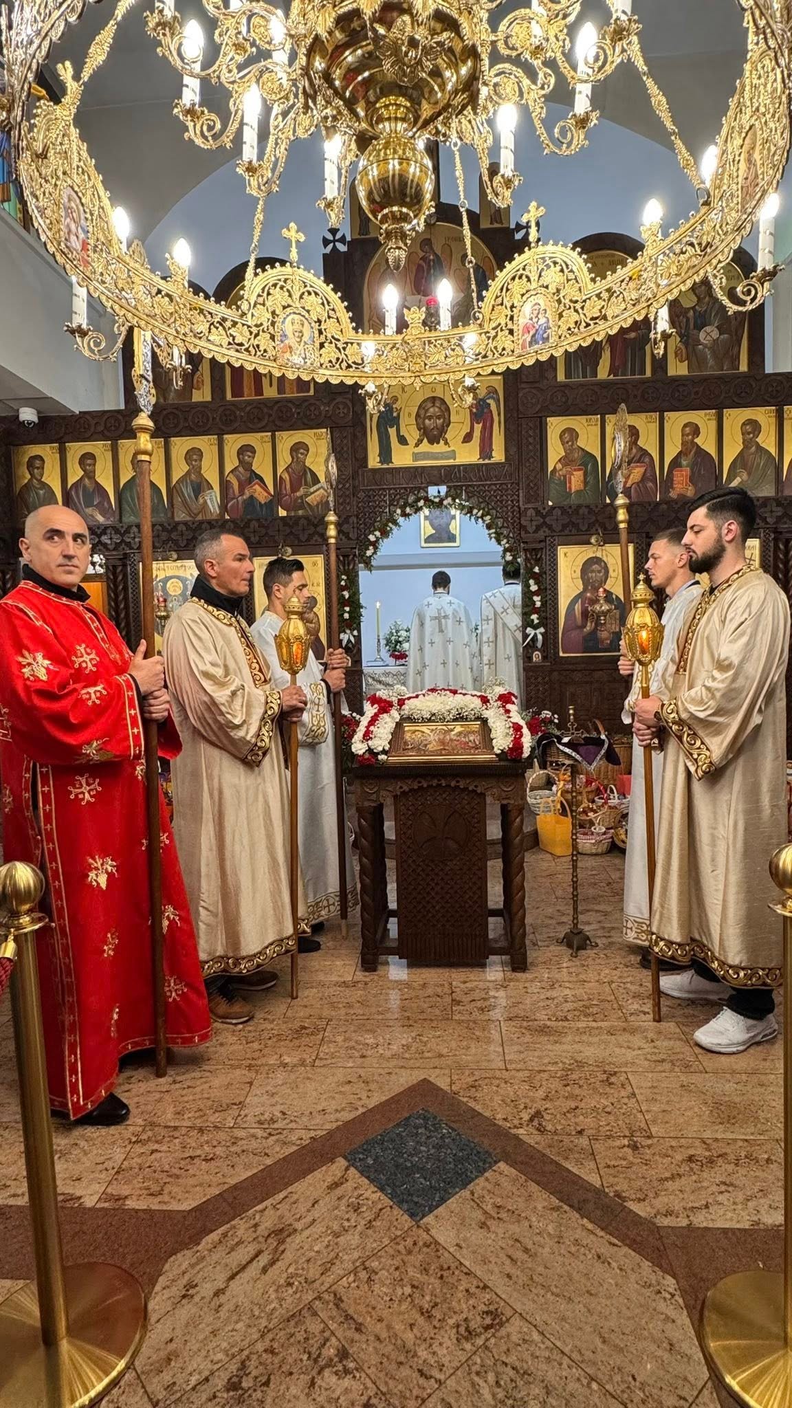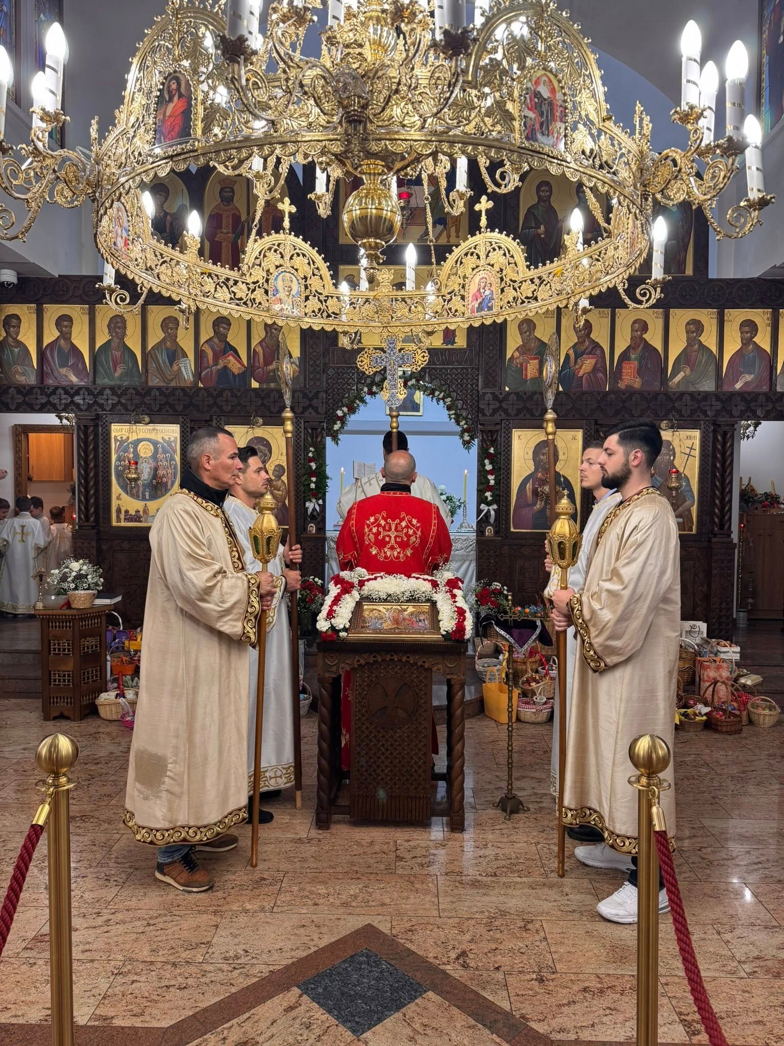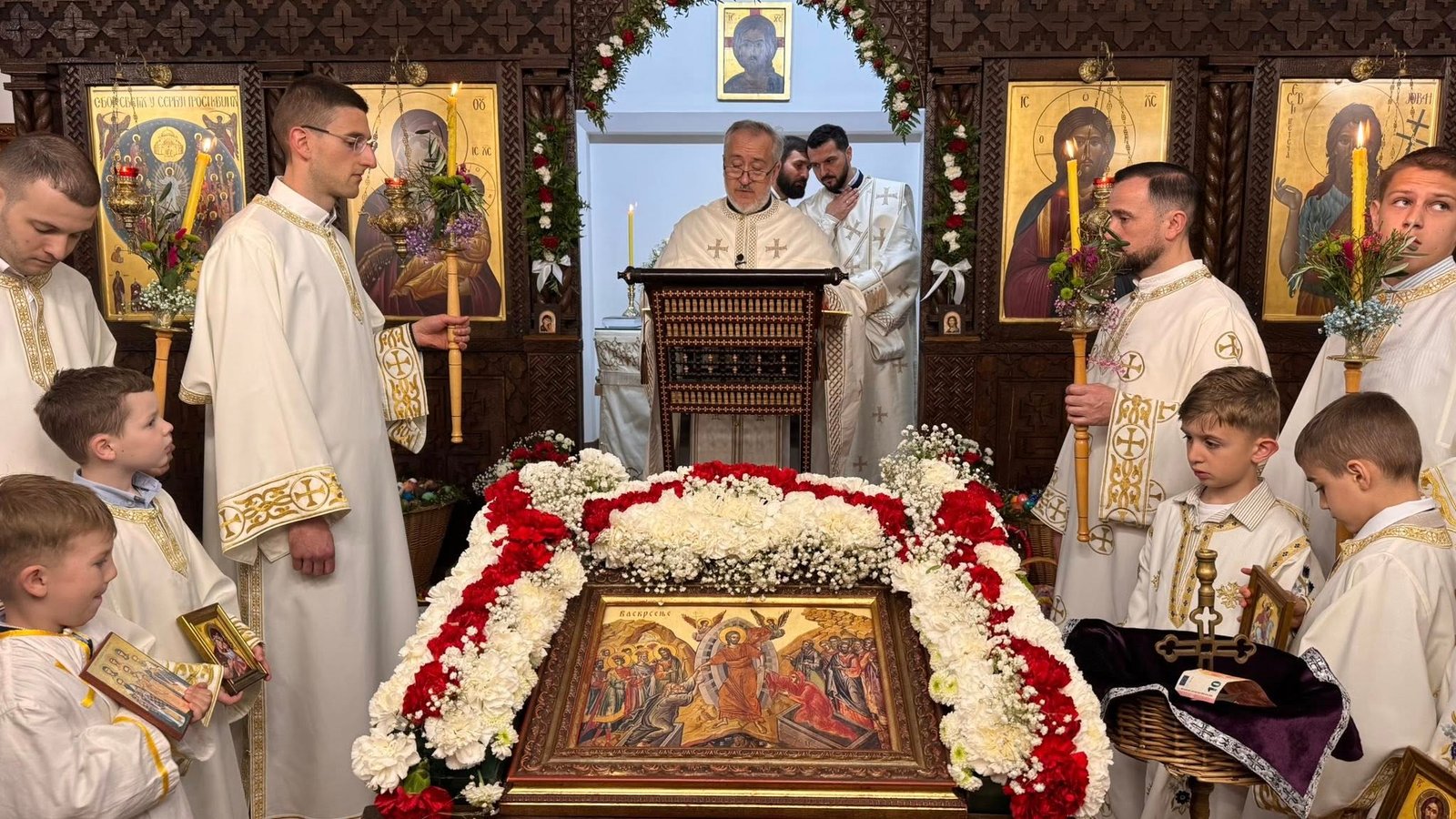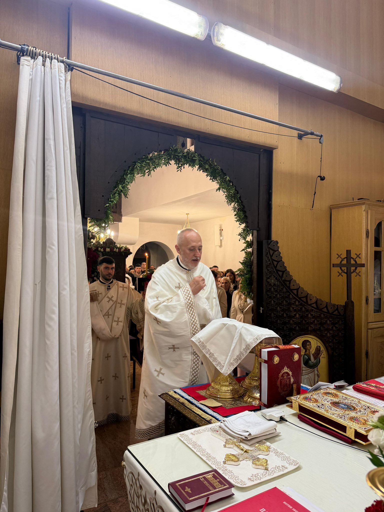 Свечана централна Света Литургија, служена на Васкрс, у недељу 12. априла 2026. године, започела је васкршњом литијом која је три пута обишла храм околним улицама. У наставку Свете Литургије началствовао је протојереј Миленко Бакмаз, уз саслужење протојереја Драгослава Ћорковића и ђакона Бојана Јарића.